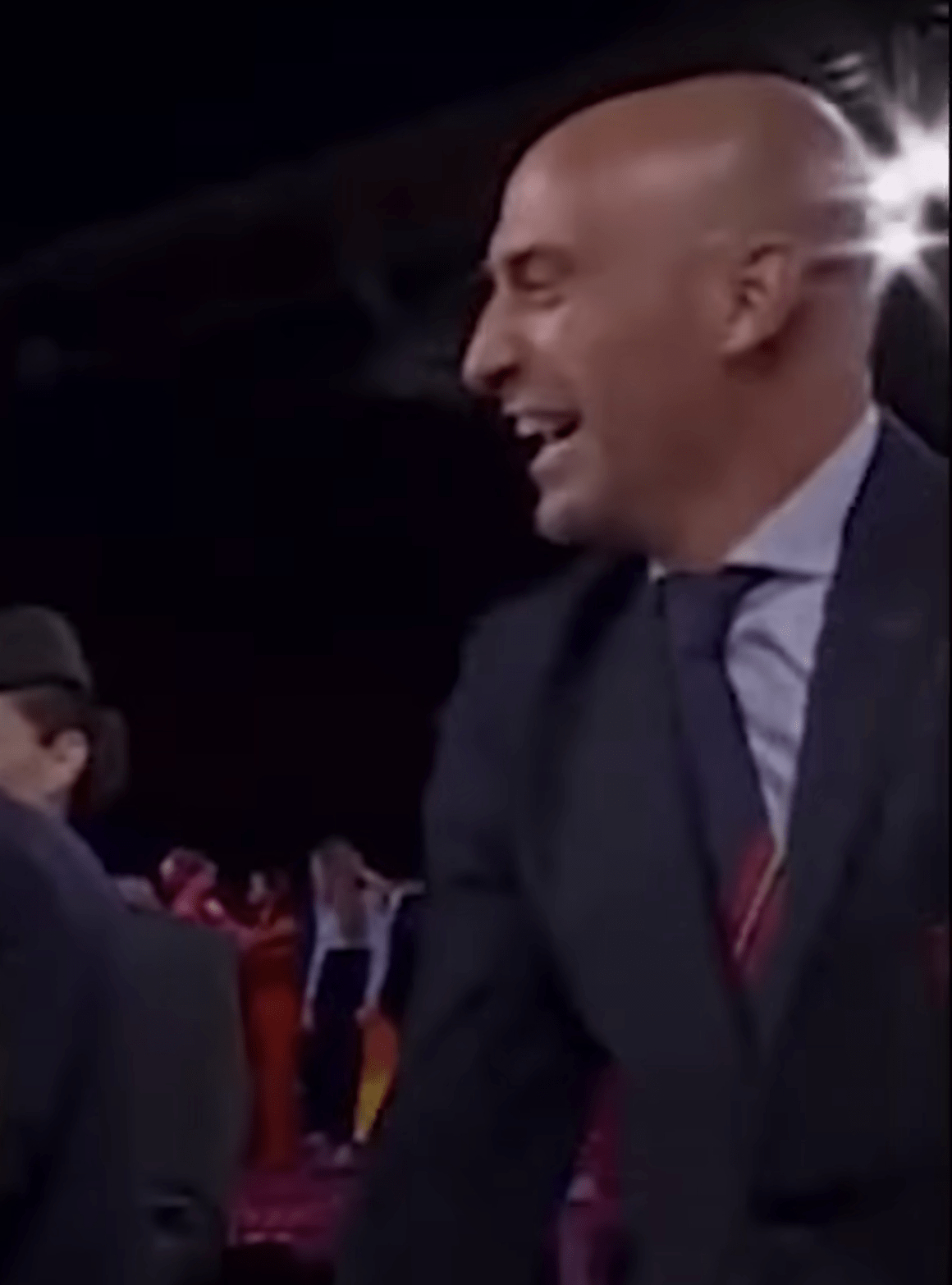 captura de imagen de rubiales (presuntamente) desencajado a partir de un vídeo de youtube (tras la felicitación de marras).
