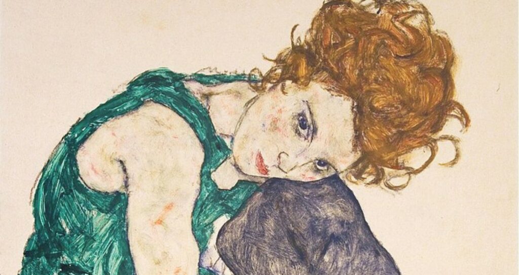 imagen mujer sentada con la pierna izquierda levantada, (1917). egon schiele. vía el traç expressiu d´egon schiele